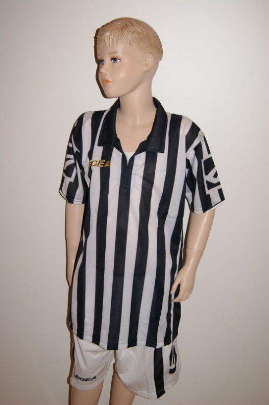Spüre in diesem Fußball-Kurzarm-Trikot-Set die glatte, hautfreundliche Polyester-Qualität auf deiner Haut und bewege dich frei bei jedem Sprint. Setze mit klaren Schwarz-Weiß-Streifen ein markantes Zeichen und trete als Team geschlossen auf. Nutze die robuste Verarbeitung, halte Druck in Zweikämpfen stand und bleibe im Spiel fokussiert.