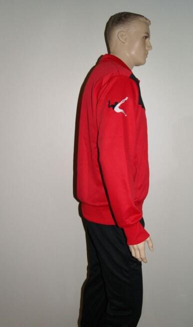 • Oberteil: halber Reißverschluss (1/2 Zip), Bündchen an den Armen, gesticktes Frontlogo, gestickte Legea-Schrift unterhalb des Kragens
